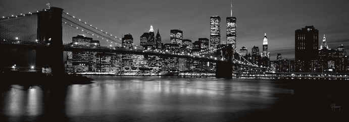 Photo Posters Evening, NY New York Harbor posters, Panoramic New York City Photo Black White Sepia tone Print, Brooklyn Bridge Art Prints, Brooklyn Bridge Photo picture, NYC Landmarks Bridges, Photographer Photography