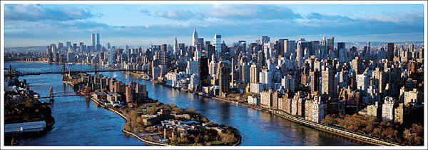 Manhattan Skyline Dawn Color Photo Poster, Aerial Manhattan City Skyline Panoramic Photo