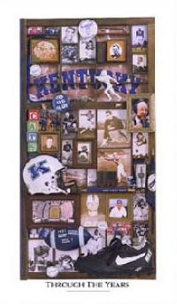 Artwork collage depicts a rich Wildcats football history...featuring such greats as UK's first All American Clyde Johnson, George Blanda, Sam Ball, Mike Pfeifer and those present day NFL athletes who once ran the grid iron for Kentucky.