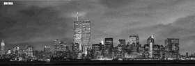 Lower Manhattan Skyline Black & White Photo by:: Driendl New York Lithographic Poster Print Panoramic Skyline Picture Size: 13 x 38" NY4BWLM |