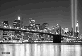NY Skyline w/ Spotlights Black & White Photo by:: Driendl New York Lithographic Poster Print