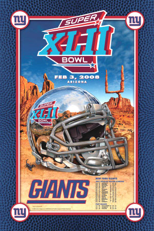 Officially licensed New York Giants NFC Collectible Championship Poster... display the official team graphics, Super Bowl XLII logo, and a recap of all regular season and post season scores.