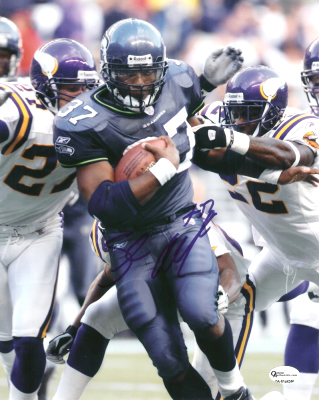 Shaun Alexander has personally hand signed this 8x10 Photo with a Blue sharpie pen. This item comes with a numbered Online Authentics.com authenticity sticker on the autographed photo, which you can verify online once you purchase it at Online Authentics.com, which is one of the top third party authenticators in the memorabilia industry. This item also comes with a Certificate of Authenticity (COA).