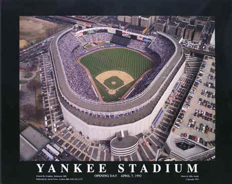 Yankee Stadium Aerial Photo, New York Yankees Baseball Poster, Yankee Stadium Opening Game April 7, 1992, Yankee Stadium Bronx NY Aerial Photos, MLB Baseball Park Stadium Aerial Posters Pictures, New York Yankees Stadium Ballpark Sports Theme Restaurant Sports Bar Room Decor Decorating Catalog, Big Apple Convention Visitor Gift Ideas, Aerial Photography Sports Photographs