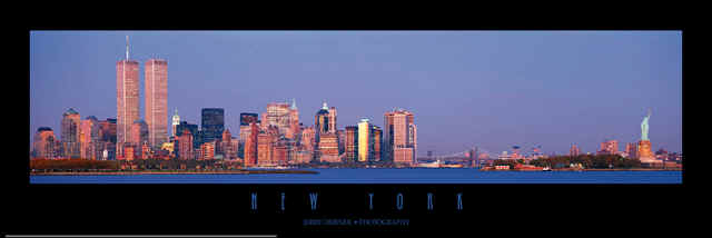 Panoramic NYC New York City Day Posters, World Trade Center Night photo, Twin Towers Evening Photos,